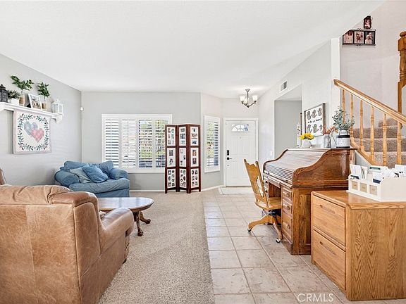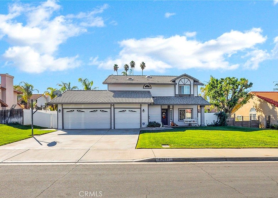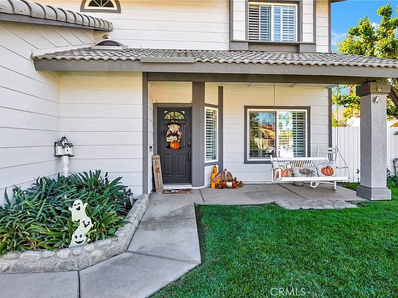 Beautifully upgraded two-story pool home located in a highly desirable Southeast Hemet neighborhood. This spacious residence offers a separate formal living room and a cozy family room with a fireplace, perfect for entertaining or relaxing. The remodeled kitchen features elegant stone countertops, stainless steel appliances, custom cabinetry, a coffered ceiling, decorator porcelain sink, and plantation shutters that frame a serene view of the backyard pool and spa. A breakfast counter and formal dining room provide ample space for gatherings, with the dining room flowing seamlessly into the formal living area. Downstairs includes a fully remodeled bathroom with a large walk-in shower. All bedrooms are located upstairs, including a luxurious master suite with a recently renovated en-suite bathroom featuring dual sinks, new cabinetry, and an oversized walk-in shower. The second upstairs bathroom offers dual vanity sinks, upgraded counters, and a large soaking tub with a shower combo.