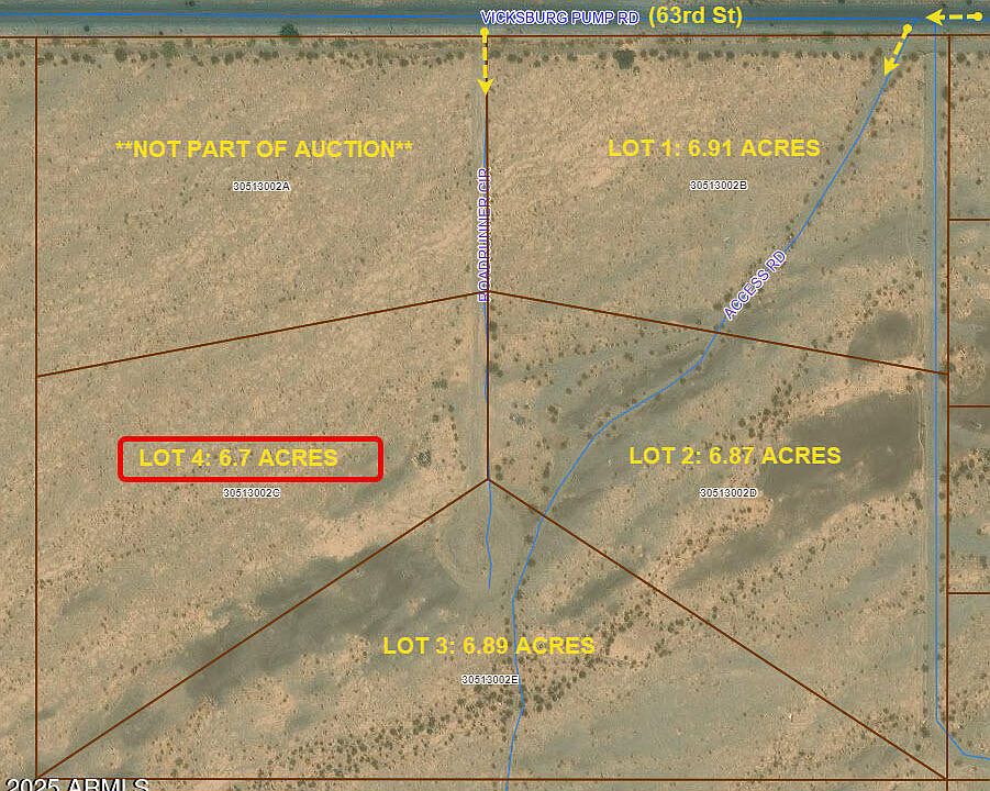 Online Land Auction! Bidding ends Wed, Oct 29 at 5:00 PM (AZ). 27.39± acres offered in 4 separate parcels near Salome, AZ. Buy one or all! Paved access off 63rd St, level land with mountain views, power at property line, fenced on two sides, no HOA, and low taxes under $300 per parcel. Not in floodplain. Great for rural living, ranchettes, RV park, or small-scale agriculture. Close to Hwy 60 & I-10, shops, and services. Seller financing offered with 25% down, 6% interest, 15-yr amortization, 5-yr balloon. Starting bids $20,000 per parcel!