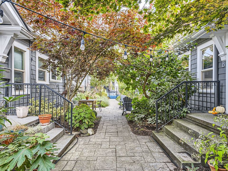 Vintage flair & modern charm mesh perfectly in this classic unit at The Bungalows! Set just blocks from all your fave spots in Cap Hill, this unit boasts more than meets the eye. Enter this gated community lush w/ trees & fall color, & step into an open layout that lives larger than its sqft. Light pours in thru big windows & skylights to accent hardwoods, vaulted ceilings, built-ins, a flex den/home office, an updated bathroom & a sleek kitchen w/ gas cooking & SS appliances. Bedroom is light & bright w/ dual closets while the loft is great for guests. Enjoy a big private bonus space out your back door. Great small community w/ manageable dues, storage units, communal courtyard & laundry. Dining, light rail & more right outside your door!