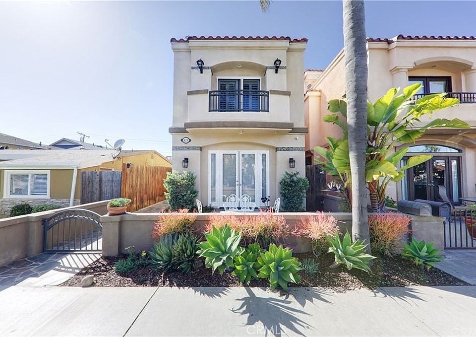 Live the ultimate Downtown Huntington Beach lifestyle just four blocks from the sand! This beautifully maintained Mediterranean-style home offers the perfect blend of charm, comfort, and coastal convenience. With only about 8 of this unique floor plan ever built, this semi-custom, three-story layout is truly a rare find. Inside, you'll find 3 spacious bedrooms, 3.5 bathrooms, and a versatile third-floor bonus room, ideal for a 4th bedroom, home office, or sunny retreat. The main level features a formal living room with French doors that open to the front patio, a separate dining area, and a light-filled kitchen and family room that seamlessly flows out to a large, private backyard patio, perfect for entertaining or weekend BBQs. Upstairs, the primary suite boasts its own balcony, a cozy raised fireplace, a walk-in closet, and an ensuite bath with a soaking tub and separate shower. Down the hall, two additional bedrooms share a Jack-and-Jill bath, along with a convenient laundry area. On the third floor, you'll find another full bathroom, access to a sundeck, and the flexible bonus room. This home has been recently refreshed with refinished cabinetry, a tankless water heater, and upgraded luxury vinyl flooring throughout the bedrooms and bonus room, classic wood look with waterproof durability. Additional features include double-pane windows, 3 fireplaces, stainless steel appliances, no carpet, a refrigerator, and a dryer. Enjoy parking for 3 vehicles with a 2-car garage plus an extra spot in front. Located on a quiet, tree-lined street, just blocks from Pacific City, award-winning schools, and downtown shops and dining, close to the action, yet peacefully removed.