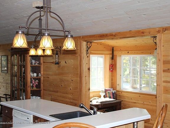 Cute, cute, cute! This two bedroom, two bath cabin has additional large downstairs space and is really attractive. Remodeled, and bedroom has new vintage-era carpet. Owner's bath even has old-fashioned style tub. Knotty pine walls give it that earlier nostalgic look. Property has a couple of fruit trees. Very nice covered deck. Owner will consider selling some furniture items.