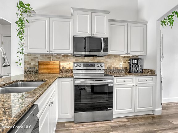 Discover this stunning residence in the highly sought-after Country Oaks neighborhood, where modern updates meet timeless charm. This meticulously maintained home feels brand new, featuring fresh paint and newer vinyl plank flooring and newer carpet in 3 of the 4 spacious bedrooms!! This 4/2/2 split floor plan offers privacy and functionality. Enjoy the separate dining room with built-in buffet shelves, perfect for gatherings, along with walk-in closets and ceiling fans for added comfort. Step outside to your peaceful backyard oasis, surrounded by lush trees—ideal for relaxation and entertaining. Additional features include durable storm shutters for peace of mind. **LOCATION, LOCATION, LOCATION!** Just a **15-minute drive to Cocoa Beach** and even closer to charming downtown Cocoa Village where you'll enjoy boutique shopping and dining. With easy access to I-95, Orlando is only about **30 minutes away**.