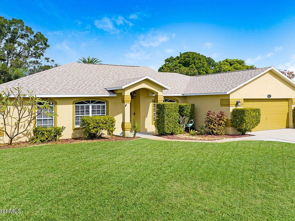 WELCOME HOME! 4 Bedroom concrete block home on City Water located in the desirable Lockmar school district. So much to love here! The new roof was installed in 2023. The kitchen boasts new appliances, upscale cabinetry, granite counters & natural stone flooring. The refinished Master suite is large & includes a thoughtfully remodeled luxury master bath & walk-in closet with built in shelving & ''barn door''. The split floor plan delivers separate living, dining & family rooms, all with gorgeous Brazilian Teak wood flooring and all 4 bedrooms have porcelain tile floors, no carpet here. The garage is oversized & the front-loading Washer & Dryer are included, too. The backyard is all fenced with an extended screened lanai that will become an extension of your living space, perfect for entertaining. The lush landscaping is fed by the sprinkler system with a dedicated private well. This property is close to 95 for a quick commute & near shopping, banking, restaurants at Hammock Landing.