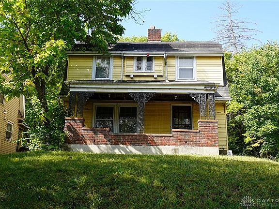 Welcome to this charming two-story home in the Hillcrest neighborhood of Dayton! Built in the 1920s, this property blends classic character with modern updates already underway offering an excellent opportunity for investors or owner-occupants to add the finishing touches and make it their own. The inviting covered front porch with brick accents is perfect for relaxing. Inside, you'll find a spacious living room with a decorative fireplace and rich wood trim details. The updated kitchen features newer cabinetry, butcher block island, vinyl plank flooring, and all appliances included. A large half bathroom on the main level has been refreshed with a pedestal sink, stylish ceiling design, and recessed lighting. Upstairs, the full bath offers new vanity, fresh paint, updated lighting, and a tiled tub/shower surround. Bedrooms feature fresh paint, new carpet, ceiling fans, and generous closet space. The unfinished basement provides excellent storage. Outside, the detached 2-car garage includes a finished bonus room ideal for an office, studio, or flex space. The home sits on a deep lot with mature trees, providing privacy and room to enjoy the outdoors.