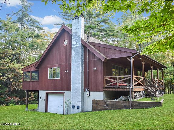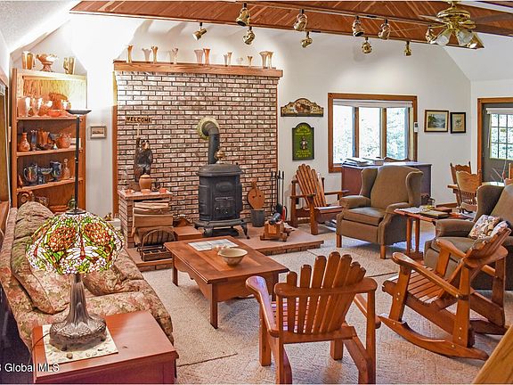 4-Season Lake George cedar home on 11+ acres!!! Trails and streams throughout the property for enjoying the outdoors. Large front porch and rear screen porch. Wood stove, cathedral ceilings, custom wood cabinets and countertops made by the seller. All ceilings beams wrapped with cedar T&G. Full basement with bonus shower, laundry sinks, and washer and dryer hook-ups. Make arrangements to view this one before its too late.