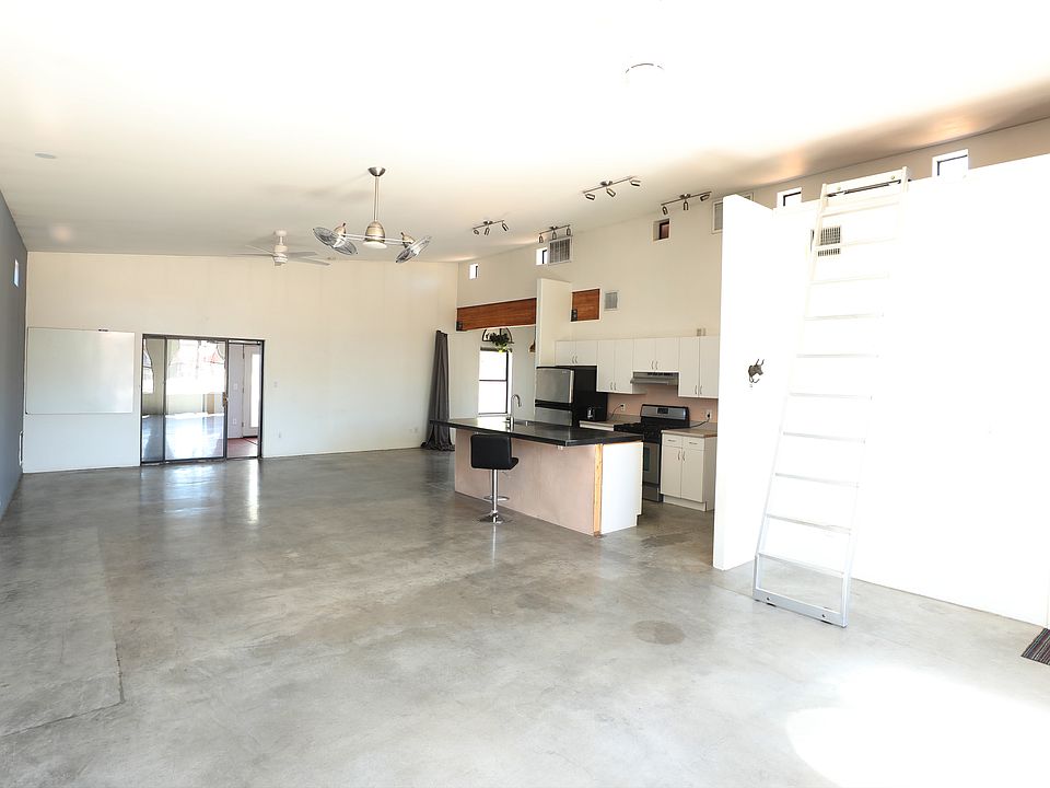 MODERN LOFT STYLE HOME, HIGH VAULTED CEILINGS, CONCRETE FLOORS, A/C, FANS THROUGHOUT, STAINLESS STEEL APPLIANCES, IN SUITE LAUNDRY, DISHWASHER, HUGE ISLAND, 1 CAR GARAGE PARKING, FENCED BACK YARD, WATER SEWER AND TRASH INCLUDED.