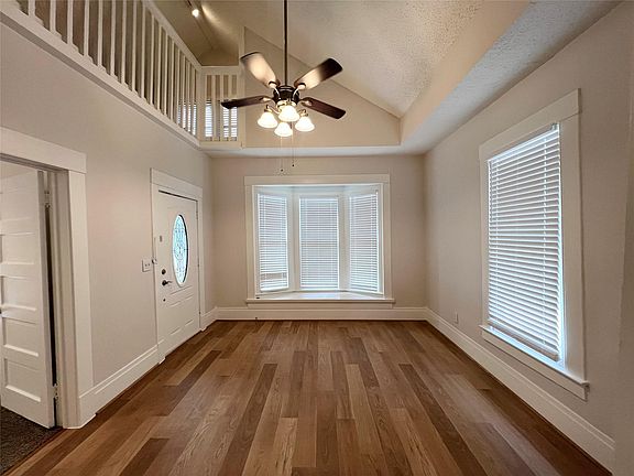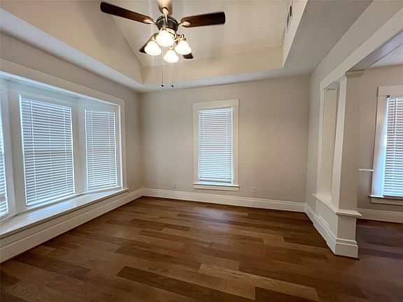 Unique Boutique 3/2/2 Craftsman Bungalow in Angleton near the Court House. 2 bedrooms / 1 bath downstairs, loft bedroom and 2nd bethroom upstairs. White oak laminate hardwoods with new carpets in bedrooms, high ceilings, 2" blinds, 2024 updated fixtures and hardware, 2024 automatic MyQ garage door opener, elegant mock fireplace, lots of windows, central hvac replaced 2023, stainless steel appliances. Beautifully restored and move-in ready.