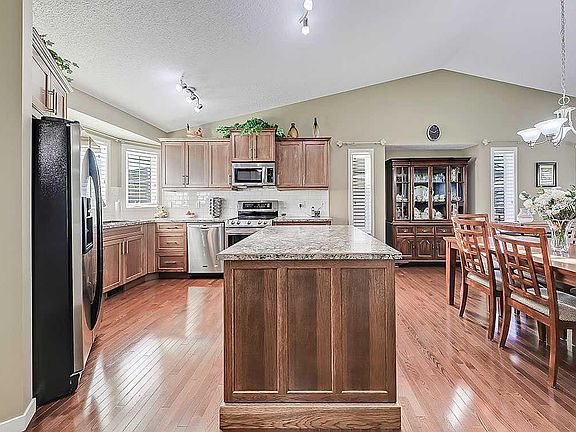 Immaculate, Turn-Key Villa in Northwest High River. Welcome to this beautifully maintained villa featuring an open-concept layout and thoughtful updates throughout. The bright kitchen offers gleaming hardwood floors, newer appliances, and a central island, flowing seamlessly into the dining and living areas with vaulted ceilings. Step out from the living room to a private, covered deck overlooking peaceful green space — perfect for relaxing or entertaining. The main floor also includes a spacious den or guest bedroom, adding flexibility to the floor plan. The primary suite features a walk-in closet and a stunning ensuite with a spa-like walk-in shower. The fully finished basement provides a large family room with gas firpelace, an additional bedroom, a full 4-piece bathroom, and plenty of storage space. This exceptional property is truly move-in ready — call today to arrange your private viewing!