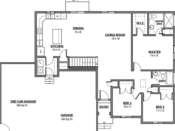 The Madeline floor plan, designed by GTM Builders, is a highly desirable home plan. It features an open concept living area that seamlessly connects the family room and kitchen, creating a spacious and inviting space for relaxation and entertaining. Furthermore, the inclusion of a refrigerator enhances the overall functionality and convenience of the home.