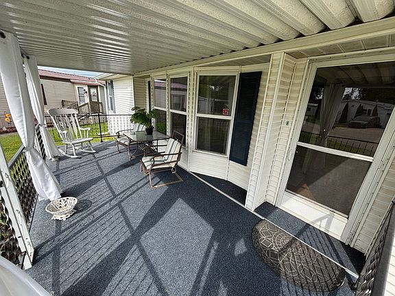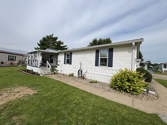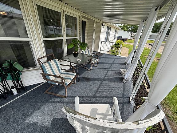 Welcome to this spacious and well-maintained 3-bedroom, 2-bath manufactured home located in Madison County on a desirable corner lot. This home offers comfort, functionality, and great value in a peaceful community. Step inside to find a generously sized primary suite featuring a luxurious soaking tub, separate shower, and dual vanities-perfect for creating your own private retreat. The heart of the home is a large kitchen with a center island, built-in range, double ovens, and a refrigerator that stays with the home. Hosting is easy in the spacious dining area, which includes a built-in buffet cabinet for added storage and serving space. Enjoy the oversized front porch with plenty of room for relaxation. The HOA Fee is Lot Rent in the amount of $342 per month, which includes snow removal, trash removal, community security, and common area maintenance. Additional features include: New metal roof in 2021, New linoleum in two bedrooms in 2024. Large front porch with plenty of room for seating and curtains to give shade and privacy (included) - perfect place for relaxing Large laundry room with laundry sink Covered carport with space for two vehicles Storage shed for outdoor tools and equipment Split-bedroom layout offering privacy and space for all Utility details: Water & sewer are conveniently billed with the lot rent Gas is through CenterPoint, averaging just $20/month Electric is through Anderson Utilities, averaging $80/month This move-in-ready home offers a great combination of space, storage, and affordability. Don't miss your chance to own this gem in a well-kept community!