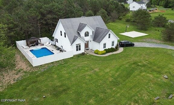 NO HOA DUES!! SHORT TERM RENTAL FRIENDLY!! Large, 4 bedroom, 2.5 bathroom house with FULL BASEMENT on 1.3 acre lot situated in a Cul-de-sac in Coolbaugh Township! This fully furnished home can be your own private park-like retreat or investment property. New basketball court, lovely firepit area and your very own in ground and heated swimming pool! Pool area has privacy fencing and plenty of patio space for your family and friends! Large deck for spending time in the great Pocono outdoors! First floor Primary Suite, large living room with vaulted ceiling, kitchen, dining room, eat in area and 1/2 bath complete the first floor. Second floor has 3 roomy bedrooms and a full bathroom. The basement is finished with tons of space for gaming, relaxing or extra sleeping space! Gaming tables are included, along with all furniture. Laundry room situated out of the way in the basement as well. This home is a must see!! Close proximity to all of the popular Pocono attractions including Kalahari Water Park, Camelback Ski Resort, Mt. Airy Casino and many others. Shopping and restaurants close by as well. Don't let this one pass you by! Schedule your showing today!