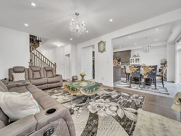 Stunning Detached Home Back onto Park with corner lot. The main floor features a spacious living room with a fireplace, open-concept upgraded kitchen with quartz countertops, backsplash, an island and gas line if need to change. The second floor boasts a luxurious primary bedroom with a walk-in closet and an ensuite, family room, two full bathroom and three bedrooms. One more bedroom on main floor. Pot lights, upgraded light fixtures, and a bright dining area complete the space. Close To Amenities, Grand River, Restaurants, Hospitals, school, shopping. Furniture available for sale with separate negotiation with seller not included in price.
