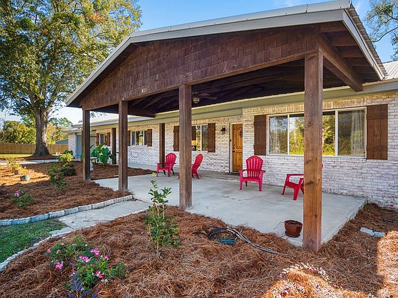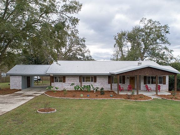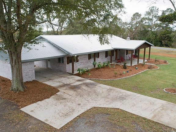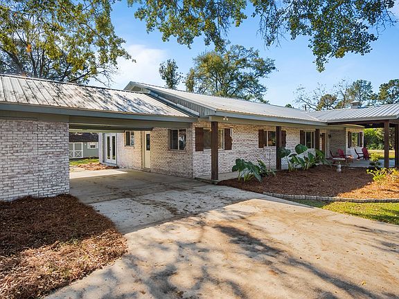 Sits in Odum SD, this white-washed brick home has batten board stained shutters. Updates include barn style sliding doors, granite countertops, custom cabinetry, and metal roof. Country charm from the wood columns on the front to the immaculate kitchen and spacious rooms throughout. Open floor plan equals more entertaining. Carry the party outdoors to the perfect backyard enclosed in a privacy fence. Several covered porches grace the space. Luxury vinyl plan and style flooring add beauty, durability. Fresh paint throughout. The Master is accessible with an outside door. Spacious walk-in closet. M. Bath has walk-in tile shower, separate garden tub with accents, double sinks, and tile flooring. The second bath has Jack and Jill sink.