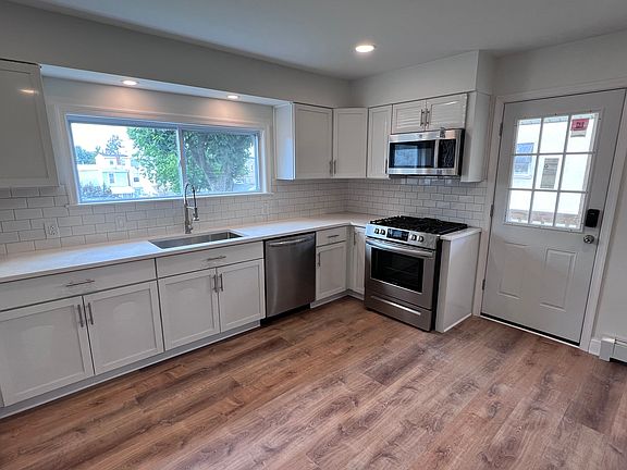 Half bath/powder room located on the first floor. Kitchen features quartz countertops and new stainless steel appliances including gas range.
