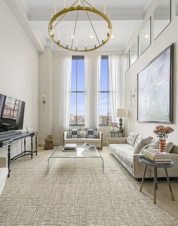 Oversized windowsStunning lighting fixturesNatural sunlightEn suite bathroomCityscape viewsDramatic high ceilingsStainless steel appliances