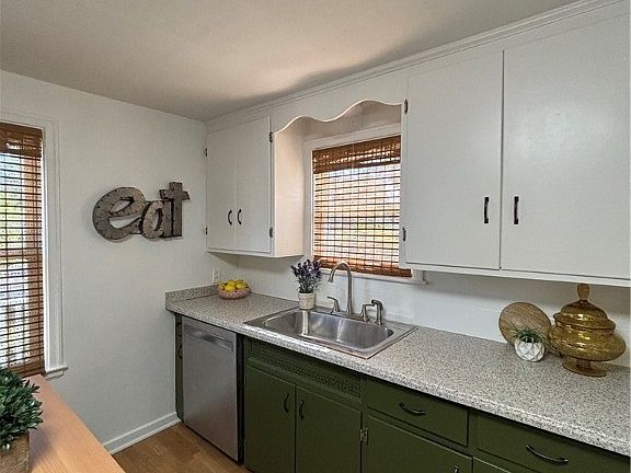New window treatmentsShed for extra storageClean dry basementGlass block windowsRefinished hardwood floorsFresh interior paintPlenty of storage