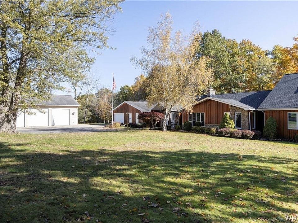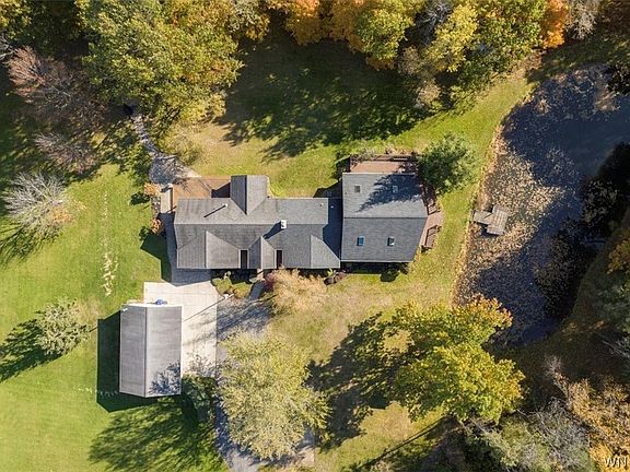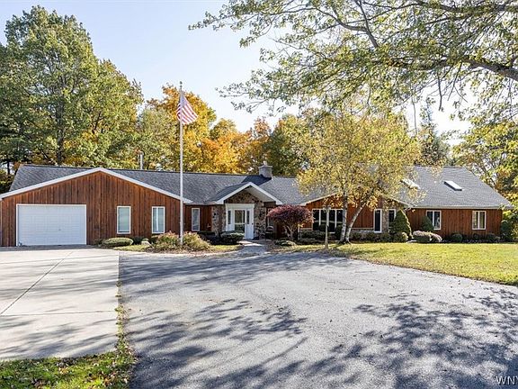 Absolutely stunning, meticulous, ONE OF A KIND property on 3.7 acres. Sprawling ranch with views galore, overlooking your own pond. Kitchen with all the high end appliances and finishes - granite, wide plank wood floors, Wolf, Thermador, Sub-zero. Morning room surrounded by windows on 3 sides and inlaid wood floors. Soaring ceilings in the great room, family room, and primary and second bedroom. Wood burning stove in great room, gas insert fireplace in the dining room. Huge primary bedroom with unique loft, large jacuzzi tub, a steam shower, and a wrap around deck. Attached garage and separate 3 gar garage that is heated, has separate electric panel, water, and room for a boat. Updates include, freshly stained cedar exterior, roof and all windows replaced 10 years ago. Do not miss the covered porch, patio, and gazebo just to name a few of the many features!