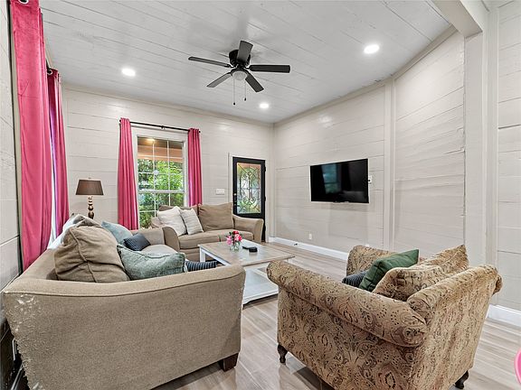 This inviting single-story home in East Dallas blends modern comfort with classic charm, featuring attractive curb appeal and a welcoming front porch. Inside, the open layout offers high ceilings, abundant natural light, and durable vinyl plank flooring throughout the main living areas. The kitchen includes stainless steel appliances, ample cabinet and counter space, under-cabinet lighting, and a stylish tile backsplash. The living and dining areas flow seamlessly and open to a beautifully landscaped backyard with mature trees, two storage sheds, and a large patio with a pergola—ideal for outdoor dining or entertaining. The primary suite features a high ceiling, elegant lighting, and a large shower with a soaking tub. Two additional bedrooms include ceiling fans and generous closets, plus a flexible nook for reading, work, or hobbies. Conveniently located near Santa Fe Trail, White Rock Lake, Lower Greenville, and Downtown Dallas, with quick access to major highways and parks. Schedule a showing to experience this property.