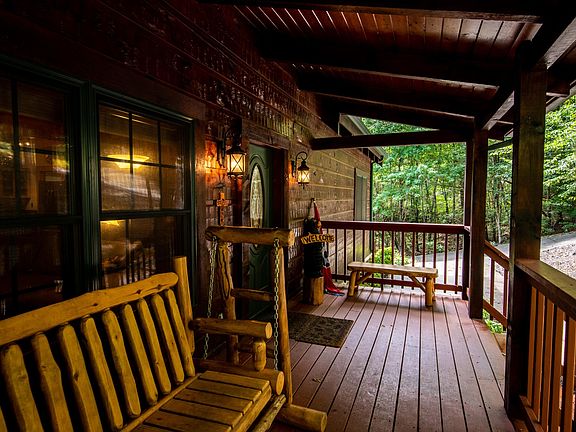 Smoky Mountain Dream-Come-True! Rare find in the exclusive Kinzel Springs mountain community. Nestled on a prime 1.15-acre lot, shrouded by gorgeous hardwoods. The discerning home-buyer will appreciate this well-designed home with superior construction components and impeccable finishes. True log home on main level, soaring ceilings & stone fireplace, gorgeous hickory flooring and cabinetry, grilling deck, 2 screened decks,'rocking-chair porch'.Spacious loft serves as a bonus family room. The cozy Bsmt guest quarters(or rec room option)has beautiful knotty pine plank walls & a wood-burning stove. Add'l workshop/utility area added for the hobbyist! Enjoy amenities including water/sewer.Kayak mounts/pot rack don't convey.