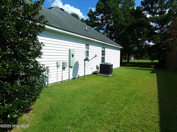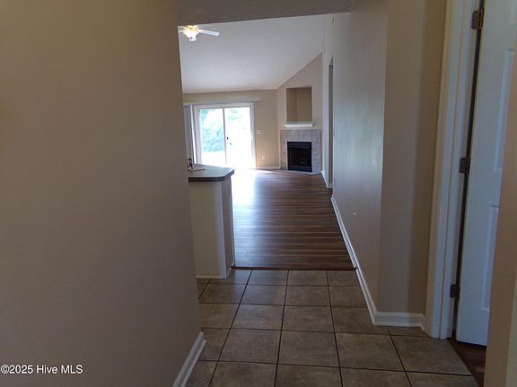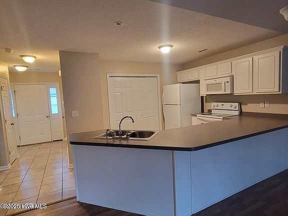 Comfortable and affordable 3 bedroom 2 bath duplex home with a large back yard, a pond view of the adjacent property, and lawncare provided in the popular West Crossroads subdivision. This attractive and well-maintained property boasts many upgrades that will impress potential tenants and make life at this property a fun experience. The front door opens to a porcelain tile foyer with coat closet which leads to the great room with LVP flooring, raised cathedral style ceiling, and a fireplace with natural gas logs. The kitchen has ample counter space, lots of cupboard storage, a pantry closet, and large laundry closet with washer and dryer hook ups. The primary bedroom suite has double windows, roomy walk-in closet, and ensuite bath. The two additional bedrooms have ample closet space. In the back yard there is a patio suitable for grilling out and entertaining. In addition to the garage, the driveway will accommodate one vehicle for off street parking. Small pets are welcomed with a monthly pet fee. Please note: The monthly rent includes lawncare, freeing the tenants to enjoy the many exciting activities on the North Carolina Crystal Coast.