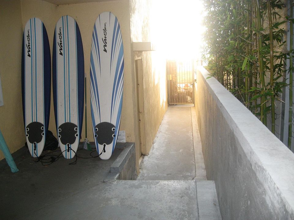 Step outside your door and walk the boardwalk! Surf,skate,bike or just relax on the beach and watch the most beautiful sunsets in the world! Kitchenette and lots of storage. No stove.