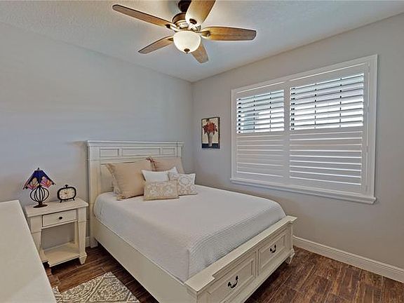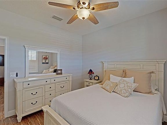 Feel right at home in this beautiful, craftsman-style William Ryan home in the coveted Villages of Avalon community. Built in 2018, not a single detail was overlooked, and this home boasts nearly every upgrade available. As you approach the home you are greeted by custom landscape design and a cozy front porch that invites you to relax and unwind. As you enter the foyer of this 4 bedroom, 2 bath home, you can see how the split floor plan provides for convenient and comfortable living with 2 bedrooms and a guest bathroom to your right for family members or for accommodating overnight guests. Continuing through the foyer toward the great room, rounded drywall corners and ceramic, wood-look tile flows through the entire home. To the left is the kitchen with upgrades galore: Stainless steel LG refrigerator, double oven, and microwave, Bosch dishwasher, granite countertops, under-sink RO system and whole-house water softening system, ceramic tile backsplash, closet pantry, eat-in kitchen space and laundry room off the kitchen toward garage. An oversized, island with sink and shiplap detailing as well as upgraded pendant lighting overlooks the great room. In-ceiling Klipsch speakers and in-wall subwoofer are highlighting features of the great room and continue through the master bedroom and onto the lanai. An over-sized, industrial-style fan, in-floor outlet, and bright natural light coming in through the sliding glass door make for easy entertaining. The great room flows into the dining room that features tray ceilings, a shiplap accent wall and a large window with custom plantation shutters that are found on all the windows throughout the house. To the left of the sliding glass doors is an optional 4th bedroom or office space and to the right is the the master suite. As you enter the master bedroom you are greeted with a feeling of grandeur. Upgraded tray ceilings and bay windows create a bright and airy space that provides a peaceful escape. You will find a walk-in closet and linen closet on either side of the entrance to the en suite bathroom that boasts marble counter tops, dual sinks, upgraded lighting, an oversized walk-in shower with dual shower heads featuring a rainfall shower head and wand shower head with separate controls. Continuing outside of the home, an extended lanai with a brick paver addition extends the home