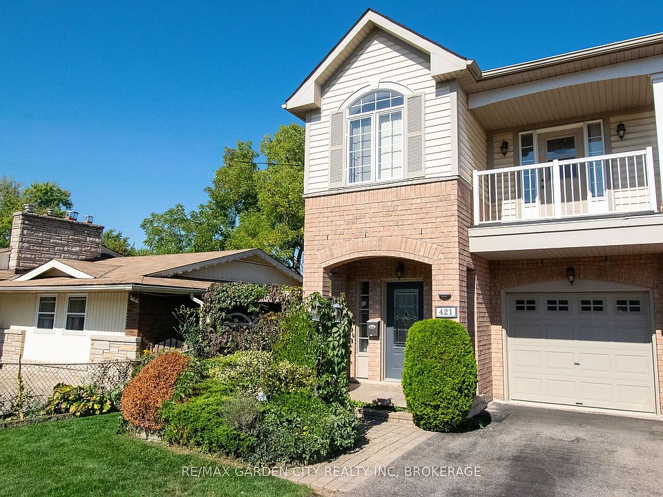 Welcome to 421 Queenston Street. Spacious semi-detached home with single garage, approximately 1535 square feet. Front entrance foyer has access into garage. Kitchen is open to living room and dining room. Living room features cosy gas fireplace and garden doors to deck. Upper floor includes three bedrooms with Primary bedroom featuring ensuite bath with tub and separate shower pus walk in closet. Second bedroom has balcony. Also upstairs is conveniently located laundry room. Lowe level includes full three piece bath and great potential to complete a finished area with patio doors walking out to back yard. This home features lots of natural light throughout. Book your showing today! Furnace replaced Feb 2020; central air June 2025; hot water tank Nov 2023; ducts cleaned June 2025