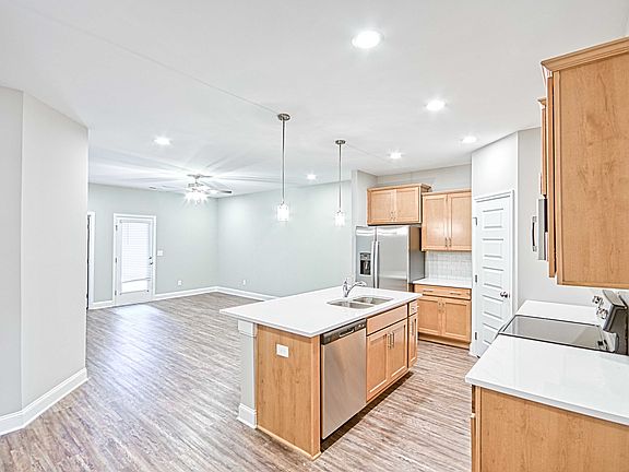 This townhome offers care-free one level living. The covered front porch leads to the entrance of the foyer. The kitchen/dining are the center of the home with stainless steel appliances, quartz counter tops, refrigerator, with disposal. Large center island overlooks the family room that leads to the small patio connecting the 2 car garage. Private master suite secluded in the back offers a large walk-in shower and spacious closet. Study/office with closet is perfect for those who work from home or need a flexible space. HOA includes yard maintenance, exterior pest control, and annual termite bond. Cain Park amenities will EVENTUALLY include ponds, walking trails, and a community pool.