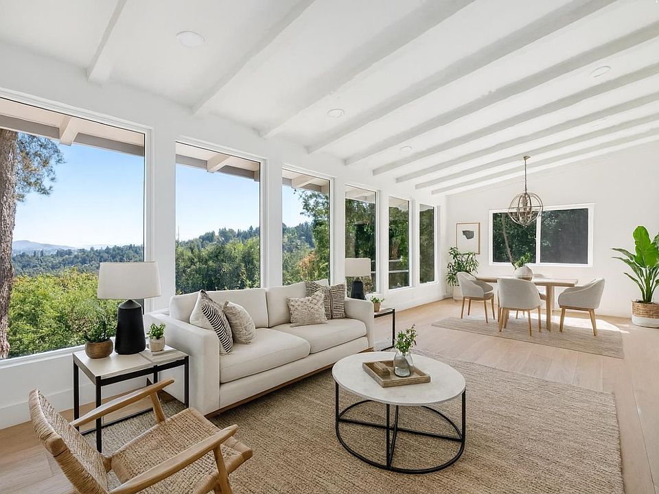 This stylish 3-bedroom, 2-bath home has been thoughtfully upgraded for contemporary living, with sleek finishes and smart design throughout. The spacious living room is filled with natural light and opens to treelined views through a series of dramatic floor-to-ceiling windows. The dining area flows seamlessly into the stunning gourmet kitchen, featuring Quartz countertops, a peninsula for casual dining, and new Bosch appliances and is the perfect setup for entertaining. Just off the kitchen, a cozy family room with a gas fireplace offers an ideal spot for movie nights or casual hangouts, with direct access to a large view deck for grilling, lounging, and enjoying the outdoors. The main level includes two comfortable bedrooms and a full bath, while the lower level is dedicated to a private primary suite that feels like a boutique retreat. This serene space includes a walk-in closet and a luxurious en suite bath with a soaking tub, separate shower, and dual vanities which are all finished with a modern aesthetic. Surrounded by nature and just moments from hiking and biking trails, this home offers the best of the outdoor Marin lifestyle, all while delivering turn-key convenience, thoughtful updates, and stylish design. A true retreat that feels miles away, yet close to everything.