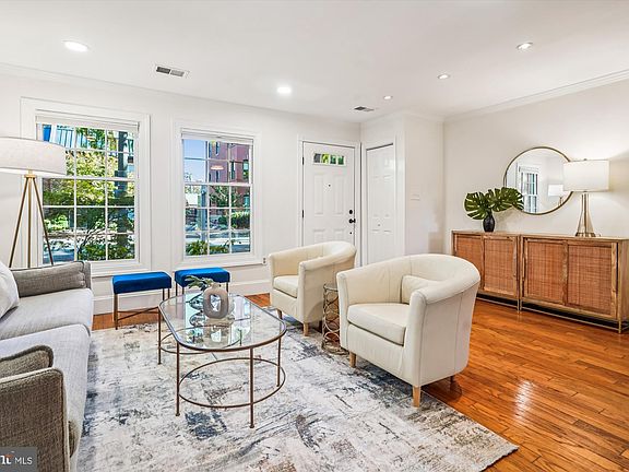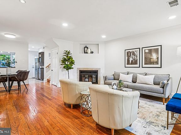 Stunning 3 level brick end-townhome in wonderful Old Town location! Prepare to be impressed by this beautifully renovated residence, blending timeless charm with elegant architectural details throughout. The home features a fully finished third level, complete with a custom wood banister and staircase, accented by a dramatic high ceiling and skylight. A bright open floor plan greets you upon entry, where you'll find an inviting living room with hard wood floors, recessed lights, crown molding, a cozy fireplace, and oversized windows with views onto the front garden. The living room flows seamlessly into the dining area, which has a delightful pass through into the kitchen. The gorgeous kitchen has sleek European 42" cabinetry with built in shelving, soapstone countertops, stainless steel appliances, recessed and under-cabinet lighting, tile flooring, walk in pantry, and large picture window with views of the peaceful yard and patio. From the kitchen, step outside to the patio and backyard, surrounded with a brick privacy wall, and lined with a side walkway. A true retreat! Just past the back gate is your own private parking space. A stylish main level half bath and a generous storage, and coat closet complete the main level. Upstairs are two spacious sunlit bedrooms including a sizable primary suite with pocket door that leads to a renovated primary bath with modern vanity with double sinks and tile backsplash, a luxurious shower, travertine flooring, and a large walk in closet with circular window. The second bedroom has several windows, a wall of closets, easy access to a beautifully remodeled hall full bath with walk in shower, and an adjacent laundry room. The top level boasts a third bedroom with vaulted ceiling, and an amazing bonus room, perfect for home office, studio, or closet. And you won't want to miss the incredible added floored and insulated attic storage space under the eaves. All three finished levels are adorned with hardwood floors and crisp fresh paint. Situated within a fabulous Old Town location, and nestled among a small enclave of homes, along a lovely tree lined street. A short stroll to parks, shopping and dining on King Street, waterfront, Metro, schools, bike path, grocery, Farmer's Market, stores, and everything Old Town! Minutes to DC, National Airport, The Pentagon, National Landing, Fort Belvoir, Mount Vernon and more!
