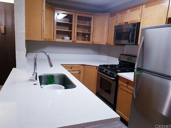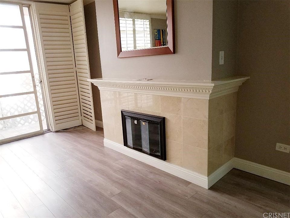 beautifully remodeled 1 bed 1 bath PLUS den in a security guarded building with new grey toned flooring, fireplace, plantation shutters. A spacious gourmet kitchen with stainless refrigerator and white quartz countertop! Rent includes roof top pool, spa, BBQ facility, multi purpose room, gym with a fabulous view Plus your water, gas & trash services all included. walk score of 89!!