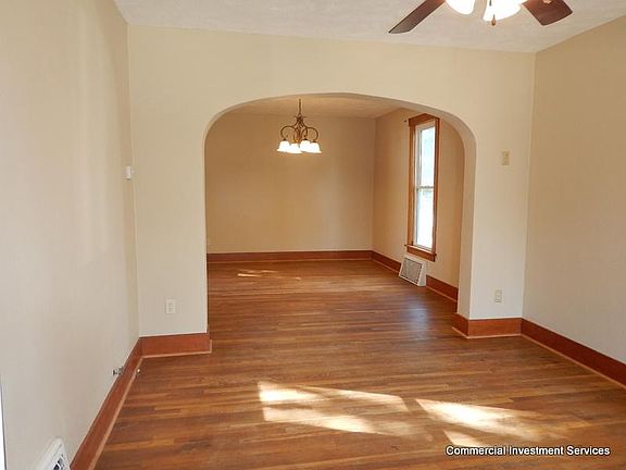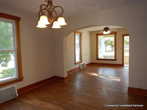 Beautiful home on corner lot. Hardwood floors, brand new kitchen all new appliances. Three bedrooms with large basement (possible 4th bedroom). One and a half bathrooms washer dryer hookup. Large front porch. One car garage. Sprinkler system and fenced yard. Will accept a small dog with extra pet deposit and pet rent. Sprinkler system is on a well. Water softener. This is a must see. Must pay all utilities. Take care of yard. No smoking. One small dog would be considered with a pet deposit and pet rent. Sprinkler system on well.