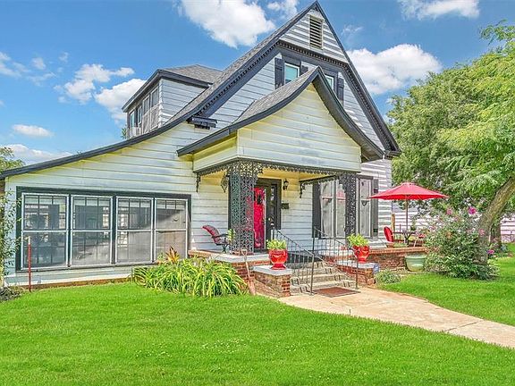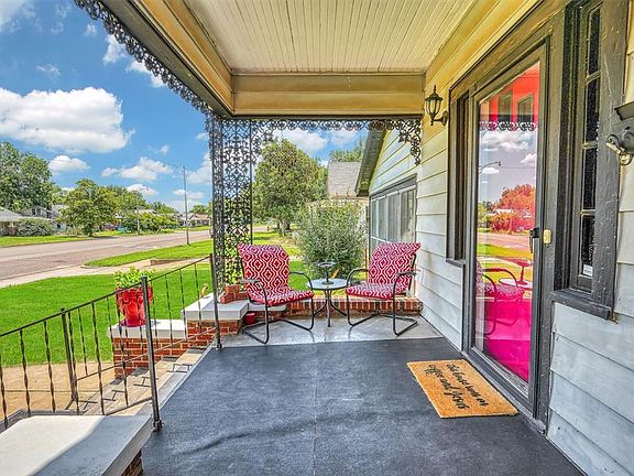 Excellent curb appeal! This 2 story craftsman style home has tons of character such as crown molding, tall baseboards, beautiful door and window trim, tall ceilings, glass doorknobs and more. The living room and dining area are an open floor plan that leads into the recently remodeled kitchen. The living room has a fireplace with a beautiful ornate, antique screen that is perfect for this home. The kitchen has a butler’s server and another area that would make a great coffee bar. The kitchen also features a large farm sink, gas stove and a breakfast nook.  Also downstairs are the Primary Bedroom, bathroom, and a very large bonus room that could be a second living area or bedroom. The bonus room has beautiful knotty pine walls and ceiling and wonderful natural lighting. Off the bonus room is a private patio area with a wood privacy fence. Upstairs are two spacious bedrooms and a full bathroom. The basement is very spacious! The roof was replaced in 2021. The backyard is very large and has an inground storm shelter, wood privacy fence (2021), storage building and a large pecan tree. This house is gorgeous! Call soon for a viewing appointment.