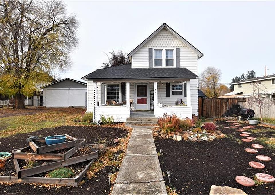 Centrally located in the heart of Downtown Redmond you will find this charming home built in 1911. As you enter, you will love how the home is filled with natural light throughout. The kitchen features new stainless appliances, refinished cabinetry with new hardware and a hammered copper sink. There is a large mud room with stacked washer/dryer and built-ins for storage. The primary bedrooms in on the main level as well as the full bathroom. The main bathroom has been updated with new flooring, copper shower curtain pipe and a 1920's refinished clawfoot tub. Up the spiral staircase are 2 additional bedrooms for family or guests. Outside there is a large, detached garage with access from both the front and rear alley and room to park cars or RV in the driveway. The backyard is fully fenced and includes a deck, raised garden beds and a firepit. Additional features include natural gas forced air, gas fireplace, newer roof, new flooring/paint and easy walking/biking to shops and restaurants!