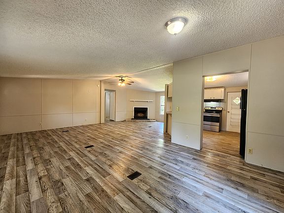 This 3-bed 2 bath home sits on a FENCED Acre of land & features an inside laundry room, a screen porch, a deck, a carport and 2 storage buildings. The equipped kitchen features Fridge, & Stove.