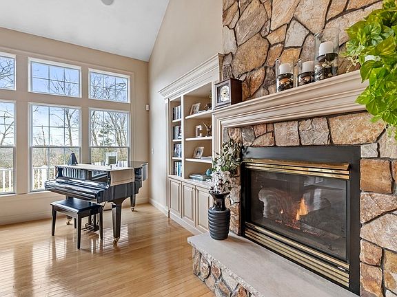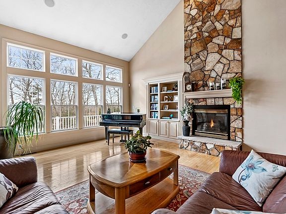 This luxurious home is nestled on the edge of a golf course surrounded by lush greenery and serene landscapes. The home offers modern architecture with an open floor plan that seamlessly blends indoor and outdoor living spaces. As you enter the home you are greeted by soaring ceilings and a wall of windows that frame the stunning views of the course and the Blackstone Valley. Floor to ceiling stone fireplace with gas insert. Gourmet kitchen with top-of-the-line appliances and large island. Formal dining room with wainscotting and coffered ceiling. The primary suite is a true oasis with a spa-like bathroom offering a jacuzzi tub, heated floors, and towel rack. The second floor offers two additional bedrooms, a bonus room that can be used as an office or bedroom. In the finished basement you will find a large family/game room with wine chiller, exercise room, Utility room, and half bath. Come be a part of this vibrant golfing community and share your passion for the game with friends