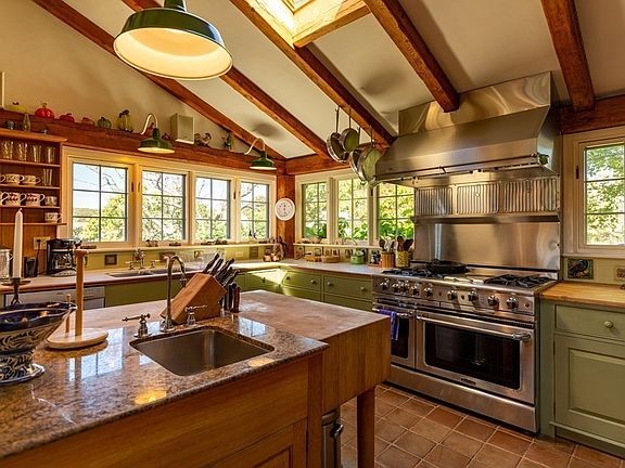 WEEKLY RENTAL $10,000-$20,000/WEEK. Fully updated in 1998 1773 Allen Farm Farmhouse perched above Lucy Vincent Beach in Chilmark is one of the greatest properties Martha's Vineyard & New England. If you know about Allen Farm, then you already know how special this place is, & how rare it is to be able to call this property home. Home sleeps 10, has 5 bedrooms, 3 bathrooms, a jacuzzi, open concept chef's kitchen & dining room w two living rooms, screened in porch, outdoor shower, & master bed on main floor, 3 bedrooms on the 2nd floor & big bedroom w 3 beds on the 3rd floor. The property is surrounded by stone walls, & offers direct access to Lucy Vincent Beach, Chilmark Pond & pasture in the front yard, & farmland/pasture in your backyard w fresh organic veggie garden at your disposal, you simply will not find a better vacation home. Comes w Kayaks/Canoes. +9.