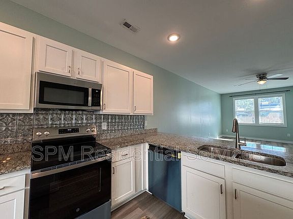 Ceiling fansLarge center islandGranite countertopsPlenty of natural lightPlush carpetTile backsplashWalk-in closet