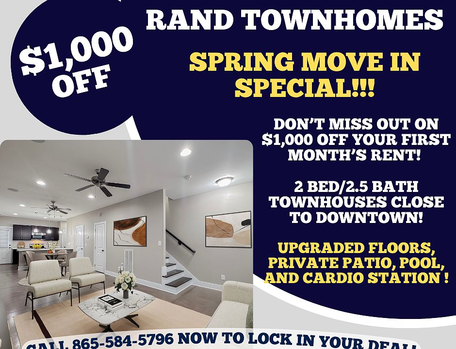 Rand at Sutherland is a pet friendly community located less than 2 miles west of the UT campus on Sutherland Avenue. The Knoxville Area Transit buses run every 30 minutes to and from campus. Rand at Sutherland consists of 18 new 2-bedroom, 2.5 bath brick townhomes. The townhomes are constructed in accordance with the highest quality and "green" energy efficient standards. This unique community will have space to enjoy outdoor living with friends, a salt water pool and community barbeque pit. Rand at Sutherland is steps away from the Third Creek Greenway, the community is within walking distance to the UT RecSports Complex on Sutherland Avenue as well as grocery stores, restaurants like Savelli's, Red Onion Pizza, Dead End Barbeque and other shopping venues. Each townhome has an open, two-story floor plan. The main level includes stained concrete floors, Living Room/Dining Room, a half bath and fully equipped kitchen with pantry, granite countertops, bar, refrigerator, oven, microwave and dishwasher. The second level incudes 2 bedrooms each with a full bath with tile floors and walk-in closet. A laundry room with full size washer and dryer is also located on the second level. The entire second floor (other than baths) has hardwood style plank flooring. Other amenities include mail center located at the pool/office, ample well-lit front door parking spaces, garbage removal, security cameras in the parking and common areas and 24-hour emergency maintenance. Rental Qualification Requirements: Minimum gross income must be 3 times the monthly rent. Credit score of 625+ for unconditional approval. Credit scores between 550-624 require additional conditions. Credit scores below 550 require a co-signer or full lease payment upfront. No felonies or evictions in the past 7 years. Bankruptcies must be discharged with supporting documentation. Conditional Approval Options: Co-signer must have an income 6 times the rent or a 700+ credit score. Purchase of additional Sure Bond(s) based on credit score. Pay the lease in full. Short-Term Lease Options 3-month lease: $200/month rent increase 6-month lease: $100/month rent increase 9-month lease: $65/month rent increase We do not offer initial month-to-month leases Fees: $65 application fee per person over 18. $495 non-refundable move-in fee. $87.50 Sure Bond fee (dependent on approval). Pet Policy: $395 non-refundable pet fee per pet. $25/month per pet.
