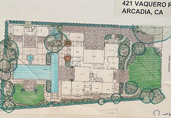 This amazing estate is located on the exclusive and prestigious peacock village of Arcadia. A French Ranch style mansion estate located on a treelined quiet street- Vaquero Rd. A rare opportunity to purchase an amazing lot with a ready-to-built floor plan. Exterior and interior of the home already approved by the city and ready to built, Home sits on a huge lot size of 25,682 sqft. Lot Frontage 105, depth 219. The masterpiece is designed by the very well known architect Robert Tong. According to the blue prints, the total living area of the main front house can be built up to 6,508 sqft, plus an ADU with 693 sqft ,Total 7,201 sqft living area , 6 bedrooms 7 baths with 4 car garage . High ceilings through out. Also features large balconies and elevator .You can tear down and build your dream home surrounded by 5 million dollar homes .The property located in a prime location of Arcadia with lots of amenities, such as highly respects dining establishment, award winning schools, brand and boutique shopping center, family parks, golf courses and many more. Love where you live !