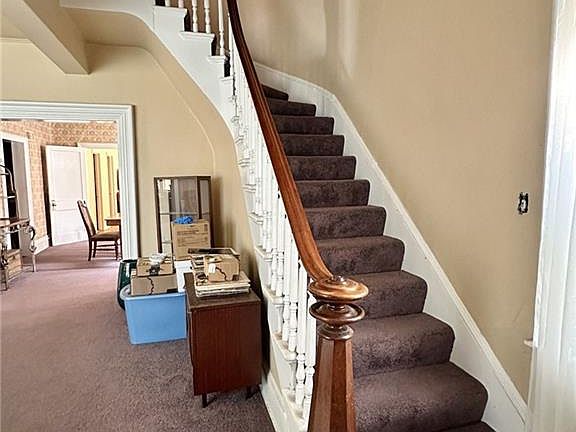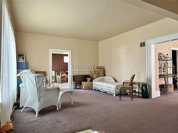 Step into the charm of yesteryear with this spacious 2-story home full of character and potential! You'll love the wide baseboard trim, arched doorway, and a stunning staircase that sets the tone the moment you walk in. The main floor offers two bedrooms, a large living room, formal dining room, kitchen, laundry, and a bathroom that just needs a little finishing touch. Upstairs you'll find three more bedrooms and a second bathroom. Outside features a detached garage, fenced backyard, and mature trees—plus it's conveniently located near the college. Home has a partial unfinished basement, forced air furnace, and tons of charm just waiting to be brought back to life with a little TLC. A true diamond in the rough!