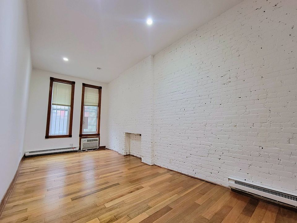 Spacious living area would accommodate a bed, couch, table and some additional furniture.