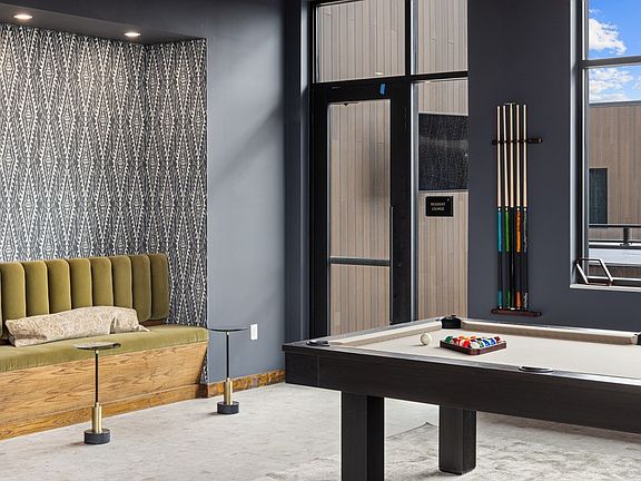 - Exterior features: Arcade Room, Barbecue, Bicycle storage, Carpeting In Bedrooms, Ceramic Tile Backsplash in Kitchen, Co-Working Spaces With Private Work-From-Home Pod, Courtyard, EV Charging Outlets, Matte Black Fixtures, Package Receiving, Peleton Bikes, Pet Washing Station, Pool Table, Private Terraces, Shaker Cabinets with Soft Close, Ski Locker Storage, Stainless Steel Whirlpool Appliances, Sundeck, TV Lounge, Wood-like Plank Floors, Yoga Room