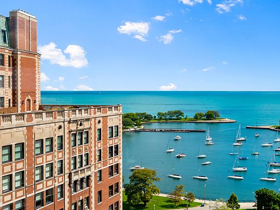 Welcome to The Eddystone, designed by renowned architectural firm Holabird & Root, rising 21 stories in east Lakeview, providing idyllic views of Lake Michigan from this rare large-scale thoughtfully combined home. Delivering over 4,500 square feet across 4-bedrooms, 4.1 baths, plus an expansive home office and dedicated den, you'll appreciate the privacy and convenience of the elevator opening directly into your foyer, leading to the sprawling home's open floor plan, accented with arched entryways providing a distinctive blend of historic charm and modern living. Flooded with natural light, the focal point of the home is the living room / dining room view, framing the lake's scenic harbor dotted with sailboats, an ideal space for large family gatherings or quiet nights at home. No convenience was overlooked during the renovation, from the chef's kitchen outfitted with professional-grade appliances, custom cabinetry, pantry storage, stone countertops, and expansive cityscape views from the charming windows above the sink, open to the great room complete with bespoke millwork and built-ins. A substantial primary suite features two walk-in closets, bathroom with private water closet, dual vanity sinks, and linen storage. Three sizable secondary bedrooms, two en-suite, fourth full shared-bath, plus substantial storage throughout all rooms and common areas. Full-size laundry room teeming with organized storage, bonus space ideal for peloton/exercise, completes the home. The Eddystone offers a range of services and amenities to enhance your living experience, including 24-hour door person, full-time engineer, on-site building manager, fitness center, and recently updated roof deck complete with grills for outdoor gatherings. Two large storage lockers included, two indoor, heated, ground floor parking spaces in Wave Lakeview garage with transferrable long-term leases.