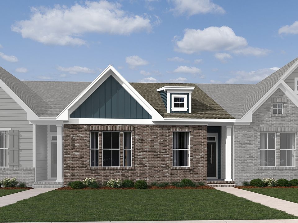 Lot # 416 - The Laurel plan offers generous living spaces with thoughtful design throughout. This home features three spacious bedrooms—each with its own walk-in closet—along with two beautifully appointed baths. The upgraded kitchen showcases the Saffire Collection, combines vibrant blues and bright whites for a bold effect. Brushed gold hardare,a large island, and an expansive pantry make this kitchen a hit. A vaulted ceiling enhances the open dining and living areas, creating an airy and inviting atmosphere.