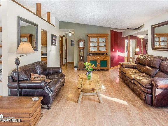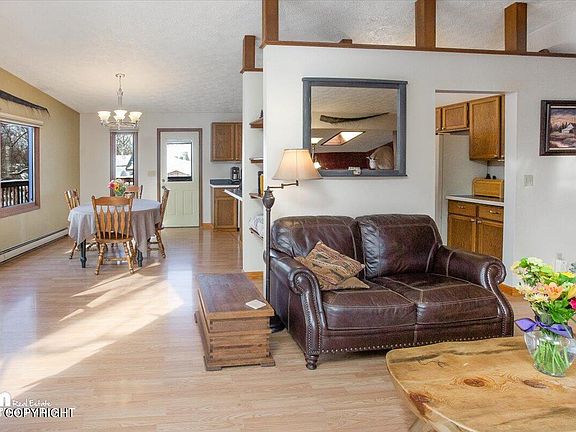 This spacious south facing home is updated & ready for new owners! Open living area w/fireplace, roomy kitchen & generous dining area. Primary bedroom suite + 2 more BR's & 2 full baths upstairs. Downstairs features a wood stove in the family room, BR, full bath + a kitchenette for a perfect guest set up. Front wrap deck, fenced yard, fire pit & more! This would be a great place to call home!