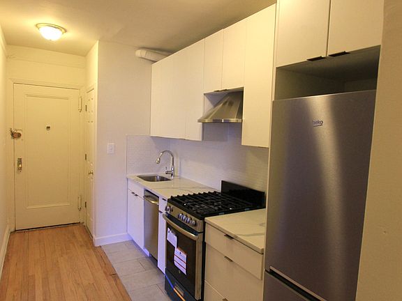 Large One bedroom fully renovated, TOP FLOOR UNIT, facing the park and have beautiful sun exposure, just steps away from the Elmhurst subway stop and all shopping. Apartment Features: ~ Large livingroom with two large windows. ~ Hardwood floors. ~ Extra High ceiling & Pre-War Features. ~ Brand new designer kitchen including: All custom cabinets, stone counter tops, backsplash, all stainless-steel appliances with a built-in range hood. ~ Large bedroom with a closet & 2 large windows. ~ Brand new tile bathroom windowed. ~ Great closet space. ~ Elevator building. ~ Laundry room on site. ~ Super on site.