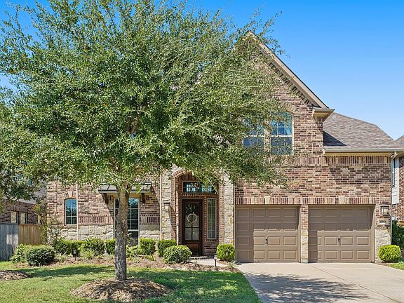Welcome to a home where thoughtful design and quality craftsmanship meet to create a refined yet comfortable lifestyle. This impressive 4-bedroom, 3.5-bath residence balances everyday living with stylish spaces for entertaining. From the rotunda entry with soaring ceilings, crown molding, and a sweeping spiral staircase, sophistication shines. The open island kitchen flows into a breakfast nook and dining area, perfect for casual meals or dinner parties. Wired for surround sound inside and out, it’s ready for music, movies, or game-day fun. The spacious living room, with 18-foot ceilings and floor-to-ceiling windows, fills with natural light and overlooks a manageable backyard, great for pets or gatherings. Upstairs, enjoy a media room, game room, and bedrooms with en suite baths. The serene primary suite offers a spa-inspired bath with soaking tub and walk-in shower. Just minutes from Pearland Town Center and with easy 288 access, this home blends comfort, elegance, and convenience.