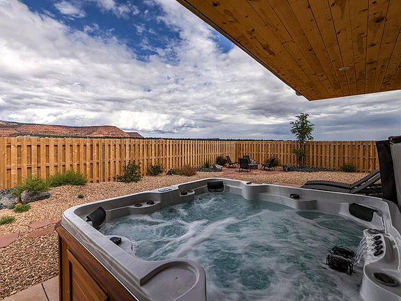 Experience the epitome of luxury and comfort in this beautiful desert retreat, Licensed Vacation Rental. Meticulously designed with modern furnishings and tasteful decor creating a perfect blend of elegance and coziness. The outside area is a true oasis with low-maintenance landscaping. The serene outdoor space is perfect for stargazing at night or simply enjoying the breathtaking views of the red rocks and blue skies. ''Casa del Sol'' Sleeps 10 totally turn-key and equipped with all you will need! 3 Bedrooms and 3 Full Baths and spacious split floor plan. Newly built home with all the updates. Hot Tub, new high-quality furniture, a fire pit, and games are all you need for guests and family. Nestled 42 miles from the east end of Zion National Park and 80 miles from Lake Powell. A short.. distance from Jackson Flat Reservoir, Coral Pink Sand Dunes, Grand Canyon, and Best Friends Animal Sanctuary. On 2.25 acres also plumbed for a Casita and RV Pad or Garage. Pad prep and plumbing to that area all ready to go for added space and income. Please call for an appointment because it is actively being used as a Vacation Rental. Owner Agent. Furniture package available.
