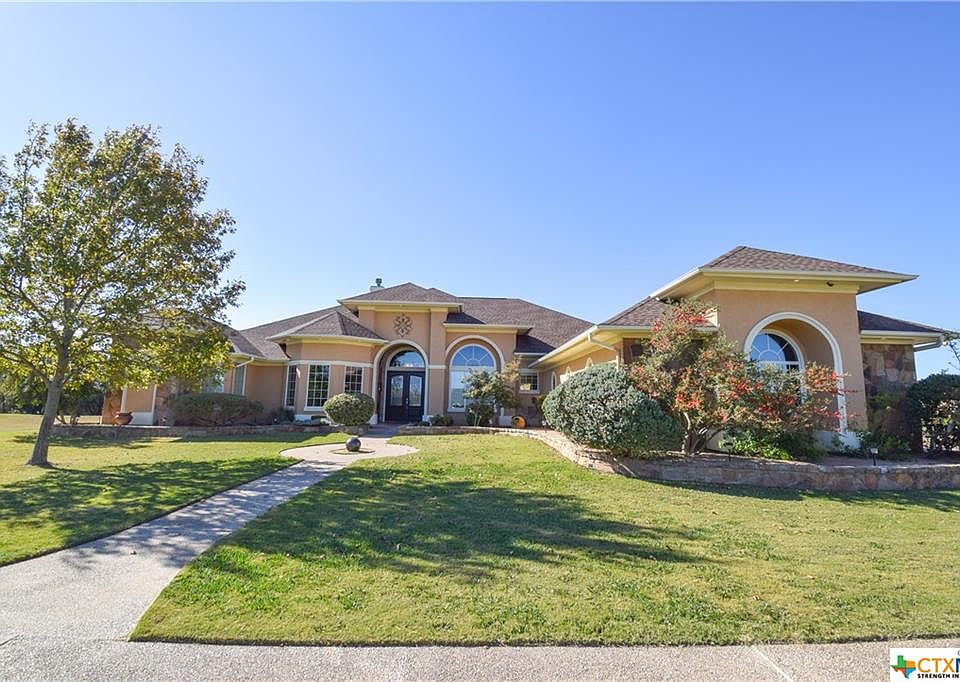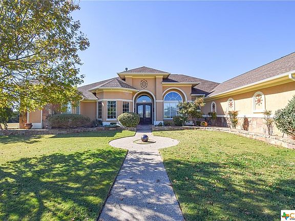 This gorgeous Mediterranean-style home was built with the growing family in mind. 4,050 sq ft of custom comfort are found in this 4 br/4.5 bath, split concept home. An outdoor paradise awaits at this stunning home set on 2.575 level acres. Plenty of room to add a custom pool. The massive steel covered patio features multiple ceiling fans, tile floor, a stone outdoor kitchen. This stately home features eye-catching landscaping which combines with the circular drive and enormous 3+ car garage and two 21' x 18' matching storage buildings. As you enter the home, soaring ceilings and an abundance of natural light highlight the warm tones. Lead beveled and stained glass features throughout the built-ins. The study/library has a beautiful wood floor and built-in book cases. Arches and crown molding in every living space. The gourmet kitchen is equipped with Sub Zero and Jenn-Air appliances, a corner walk-in pantry, an island, double ovens, a wet bar, and wine frig. The master suite has a sitting area opens to a large sun room. Each minor bedroom has an ensuite. No more fighting over the bathroom! Home is equipped with solar panels, security system, surround sound, and sprinkler system.